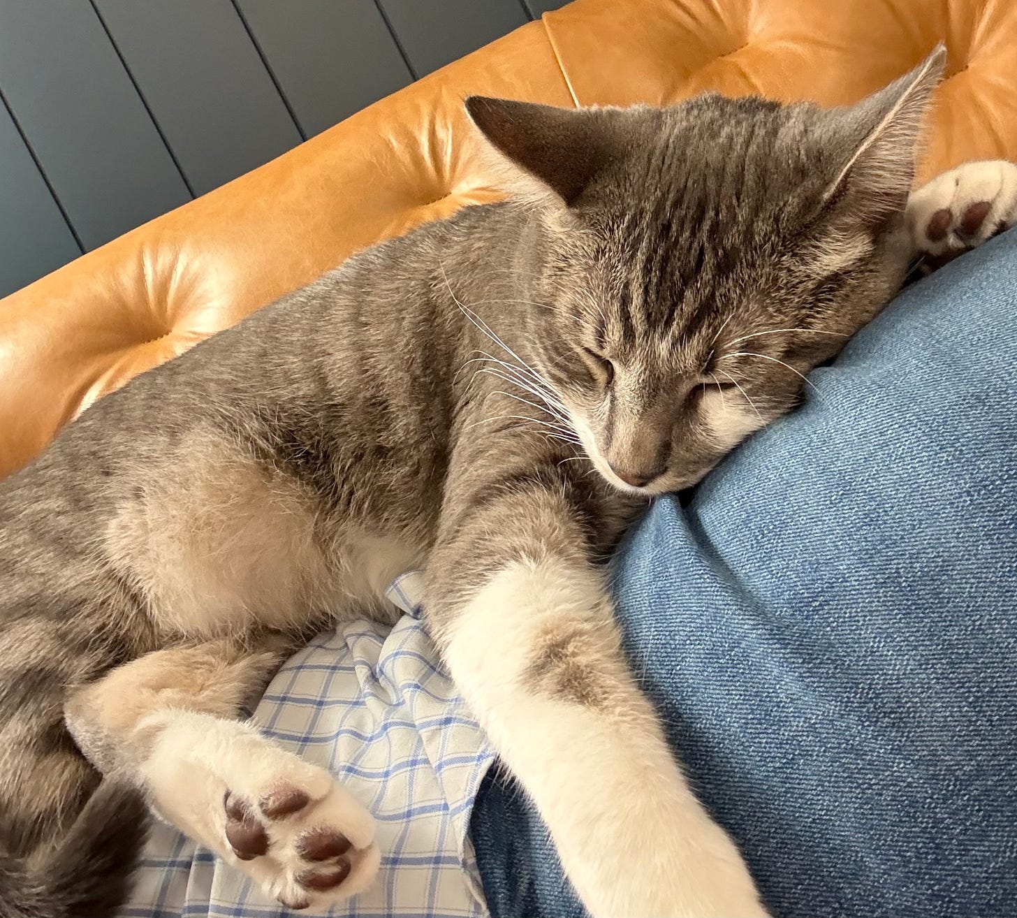 And oh my, how the kitten has grown! This little feline of cuddles is almost a year old and still joins me for a snooze whenever I can escape long enough to write on my couch.